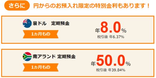 住信SBIネット銀行の米ドル定期預金の特別金利をウォッチしていますが、南アランドで一か月ものの定期預金特別金利年利50%(税引き後39.84%)がリリースされたので、メリットがあるか調べました。