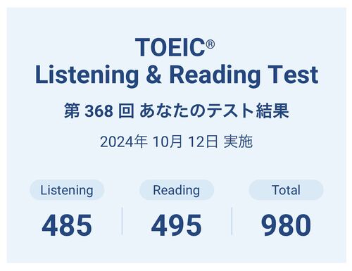 みなさんこんにちは、牛です。先日受けたTOEICの結果が出ていたので、レポートを配信いたします。ご査収の程、よろしくお願いいたします。今回がTOEICプロジェクトの最終回です。